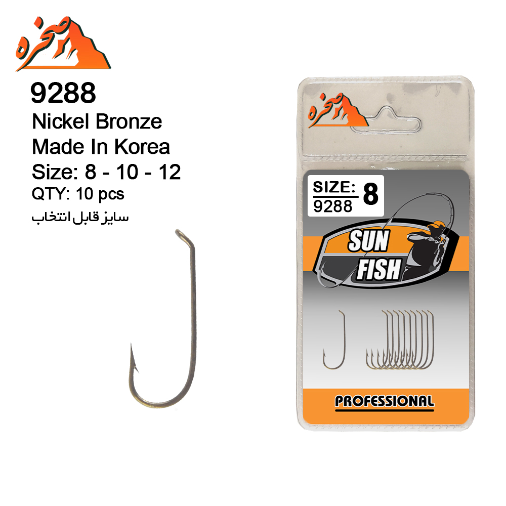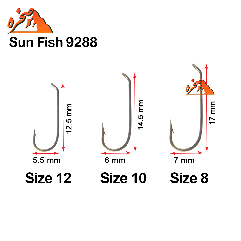 قلاب پشه Sun Fish مدل 9288 بسته 10 عددی است. جنس قلاب پشه سان فیش برنز می باشد. این قلاب ماهیگیری پایه بلند است و قلاب ماهیگیری 9288 مناسب ساخت پشه ماهیگیری است. قلاب سان فیش مدل 9288 ضدزنگ می باشد و در سه سایز 8 و 10 و 12 موجود می باشد.