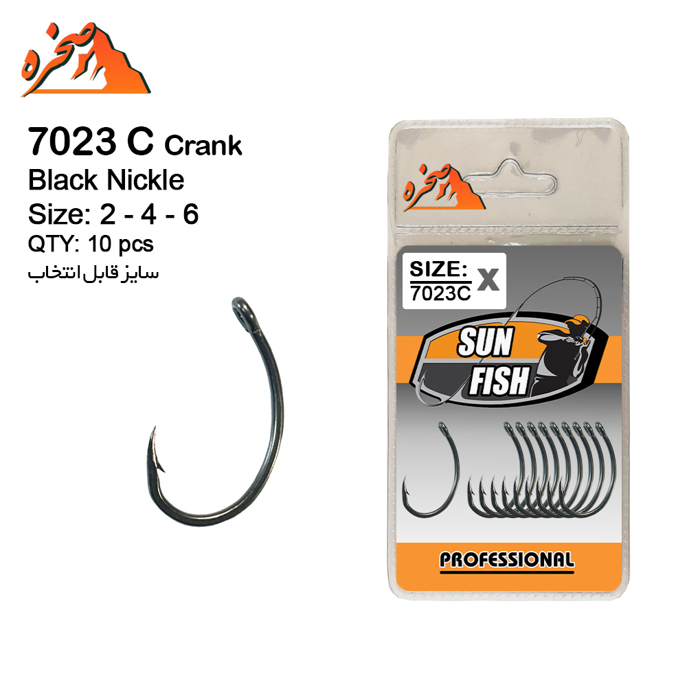 قلاب کرنک Sun Fish کد 7023C یک بسته 10 عددی می باشد. قلاب کرنک سان فیش از نوع پایه کوتاه است و جنس قلاب 7023c نیکل می باشد. این قلاب پایه کوتاه، قلاب تخصصی بویله است و مناسب برای ساخت ریسه های کپوری می باشد. قلاب کرنک sun fish بسیار تیز است و فورج شده می باشد. این قلاب ماهیگیری در سایز های 2 – 4 – 6 موجود است.