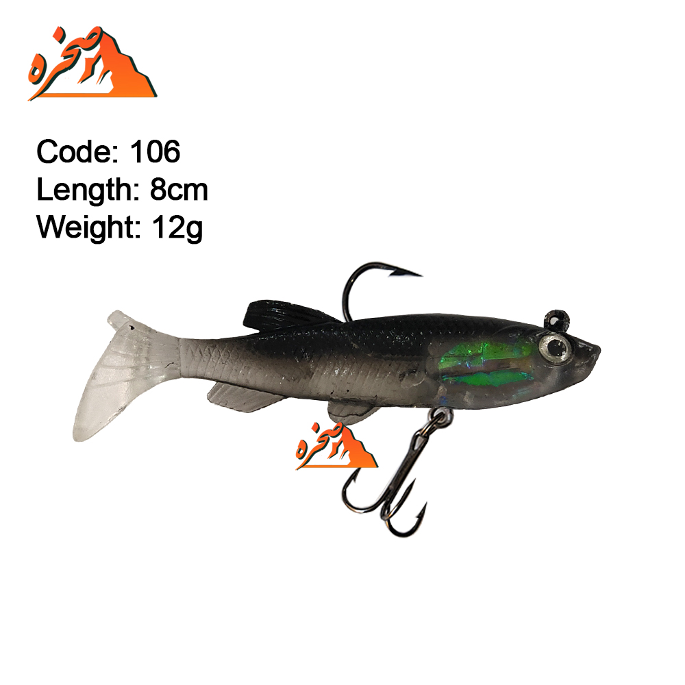 ماهی ژله ای دودی رنگ برند five stars کد 106 با طول 8 سانتمتر و وزن 12گرم برای شکار ماهیان مهاجم مثل قزل آلا، اردک ماهی و… استفاده می شود، طعمه های ژله ای از رایجترین ابزار در صید ماهیهای مهاجم در سبک اسپینینگ میباشد. قدرت مانور بالای در ماهیگیری و جنس نرم طعمه که شبیه به غذای طبیعی ماهی میباشد، فرصت بهتری را برای صیاد فراهم میکند. طعمه های ژله ای برند FIV STARS نامی شناخته شده است. این ماهی ژله ای از برند FIV STARS-فایو استار از یک قلاب سه شاخ و یک قلاب تک شاخ فولادی می باشد.