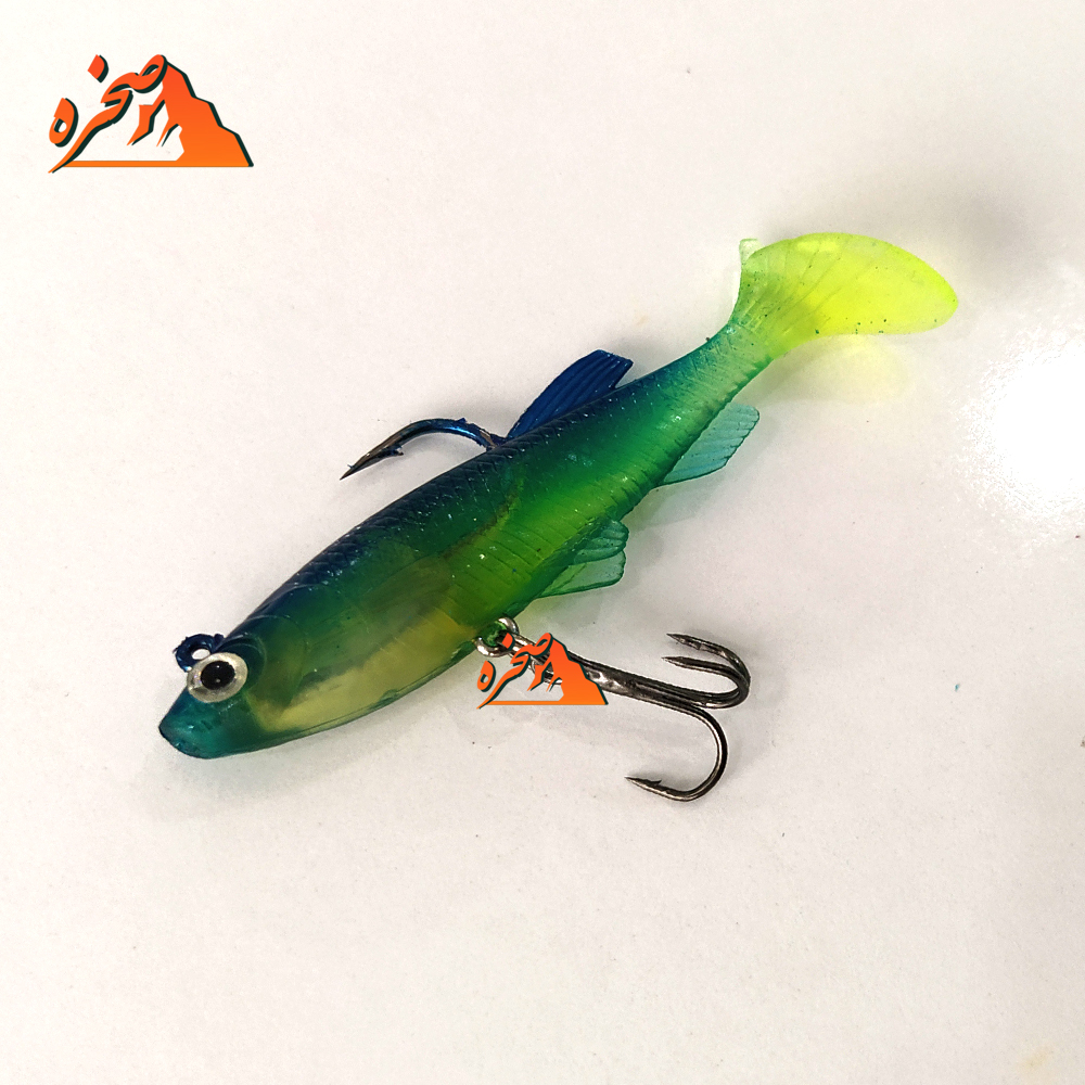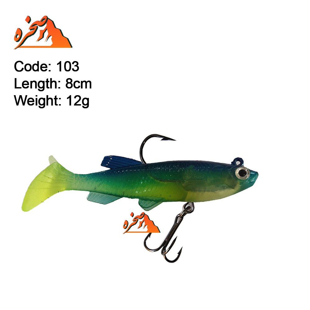ماهی ژله ای سبز برند five stars کد 103 یکی از رایجترین ابزار در صید ماهیهای مهاجم در سبک اسپینینگ میباشد. قدرت مانور بالای در ماهیگیری و جنس نرم طعمه که شبیه به غذای طبیعی ماهی میباشد، فرصت بهتری را برای صیاد فراهم میکند. طعمه های ژله ای برند FIV STARS نامی شناخته شده است. این ماهی ژله ای با وزن 12 گرم و طول 8 سانتیمتر که دارای یک قلاب سه شاخه و یک قلاب تک شاخ فولادی میباشد.