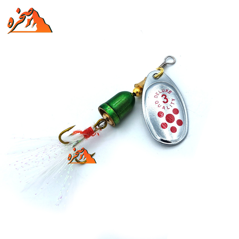 لانسه طرح بلو فاکس نقره ای خال قرمز رشته سفید سایز 3 برای ماهیگیری ماهیان شکاری مثل قزل آلا، اردک ماهی، سوف، و… کاربرد دارد، طراحی این لانسه ماهی گیری به گونه ای می باشد که با پرتاب و کشش نخ ماهیگیری شروع به چرخش در آب میکند، و شبیه به بچه ماهی در آب می شود و ماهیان مهاجم را به سمت خود جذب می نماید ، و وقتی ماهیان مهاجم به آن حمله میکنند به دام قلاب سه شاخ قسمت انتهایی لانسه بلو فاکس می شوند.