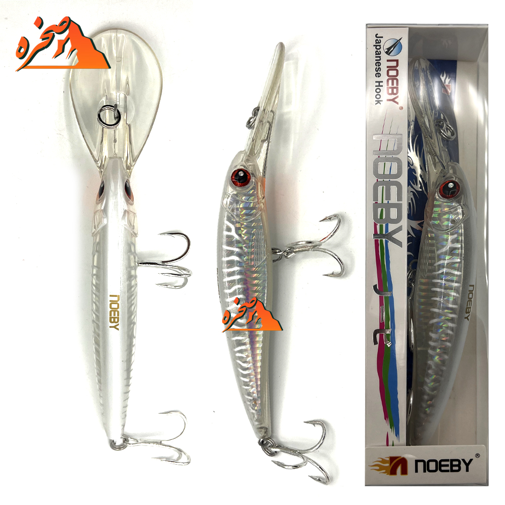 طعمه ترول نئوبی مدل NSL033T دایو 6 متر با طول 14 سانتی متر و وزن 52 گرم دارای لیپ بزرگ جلوی طعمه باعث میشود طعمه سریع عمق 6 متر بگیرد. لور ترولینگ NOEBY بدنه استخوانی شکل محکمی دارد و رنگ داخلی ماندگاری دارد. لور ترولینگ NOEBY از نوع فلوت میباشد. به جرعت میتوان گفت طعمه های NSL یکی از بیشترین تنوع ها را در بین طعمه های موجود در بازار میباشد. لور ترولینگ نئوبی دارای دو عدد قلاب سه شاخه با استیل ضد زنگ با نوک های تیز با ضخامت 4X میباشد. در وسط لور ترولینگ نئوبی مفتول سیمی ضد زنگ از نک طعمه تا انتهای آن کشیده شده و تمام حلقه ها و قلاب های طعمه را در بر گرفته.