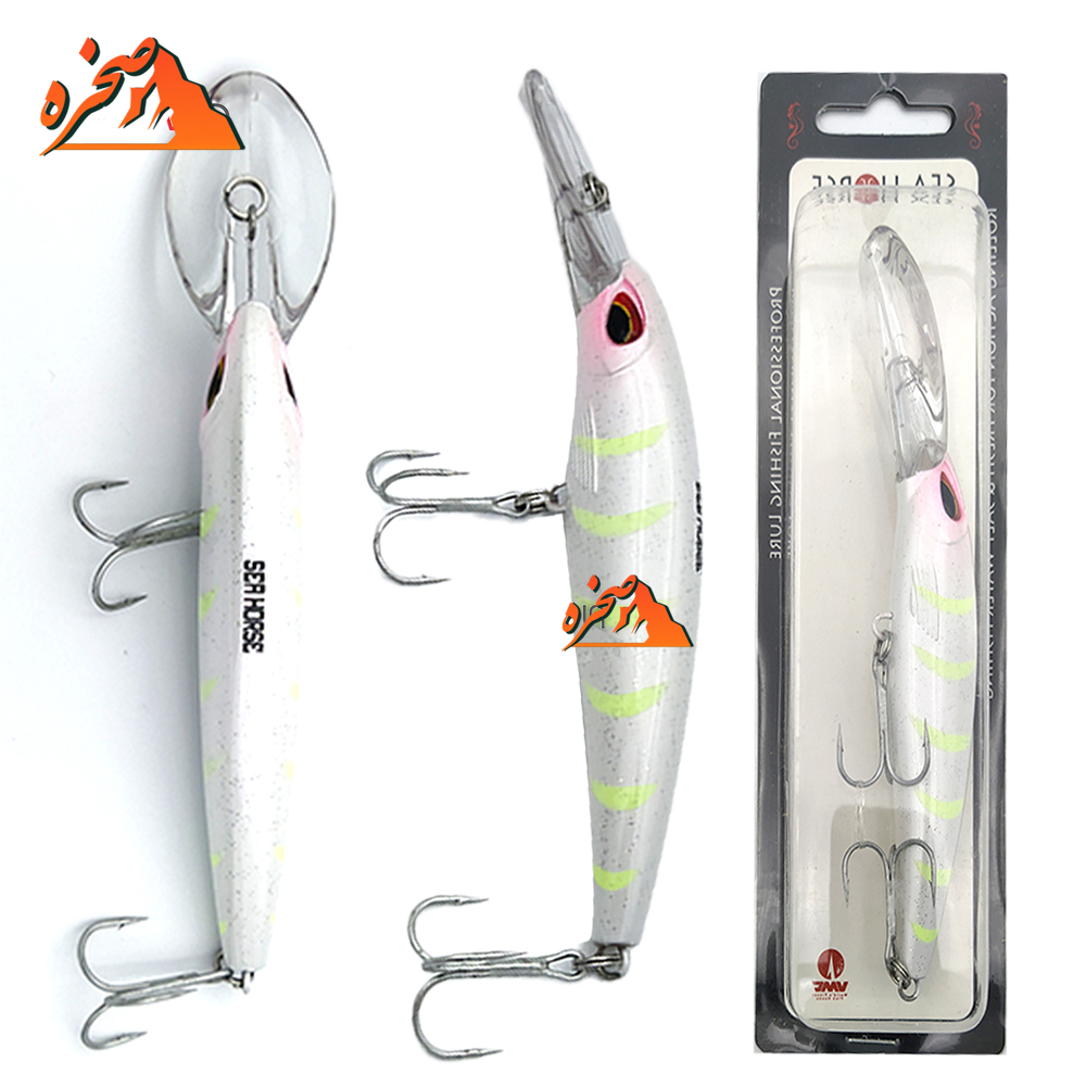 لور ماهیگیری برند Sea Horse کد blm08 مناسب شکار انواع ماهیان مهاجم آب شور از جمله باراکودا، شیر، هامور و … می باشد. این طعمه استخوانی به علت دایو 2 تا 4.5 متری خود می تواند برای ترولینگ و اسپینینگ در آب شور استفاده شود. لور ماهیگیری Sea Horse با وزن 32 گرم و طول 12 سانتی متری اش ، قابل استفاده برای ترولینگ روی قایق و یا اسپینینگ در لب ساحل ، اسکله ، سکو ، قایق و … می باشد.دارای دو عدد قلاب سه شاخه ساخت شرکت VMC فرانسه می باشد.